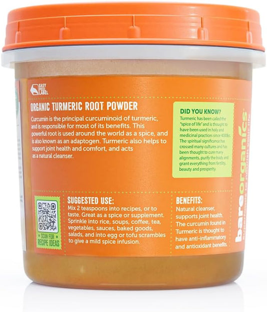 Organic Turmeric Root Powder Superfood - 8 Oz Dietary Supplement by BareOrganics