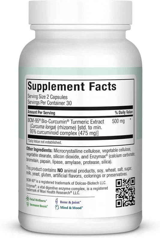 Turmeric BCM-95 Curcumin Maxicaps - 60 Capsules by Maxi Health for Joint Support and Inflammation Management