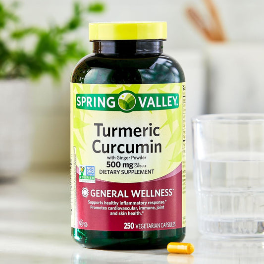 Turmeric Curcumin with Ginger Capsules - 500mg, 250 Count, Non-GMO, Kosher, Joint and Immune Support, Vegetarian Formula for Daily Wellness