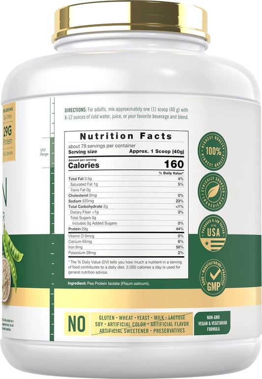 7lb Carlyle Pea Protein Powder with BCAA'S - 29G Protein, Non-GMO, Gluten, Soy-Free, Unflavored - Vegetarian Formula