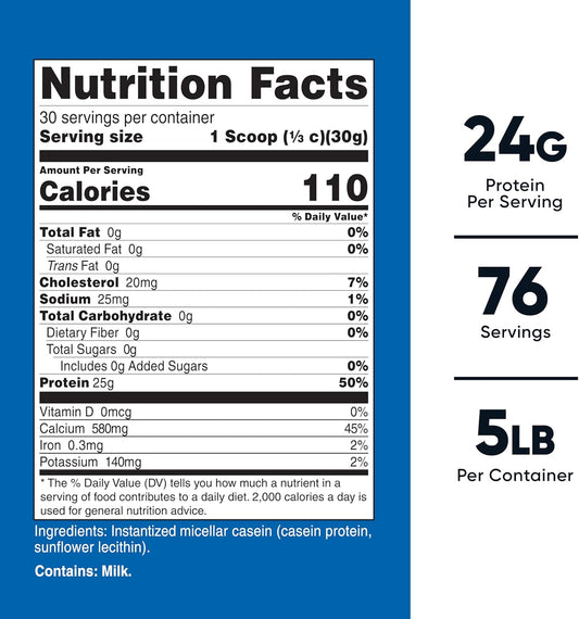 5lb Nutricost Micellar Casein Protein Powder - Unflavored, Non-GMO, Gluten Free