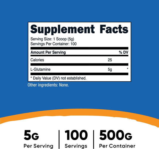 500g Nutricost L-Glutamine Powder - Unflavored, Gluten Free, Non-GMO - 100 Servings