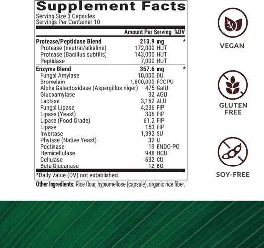 Digestive Enzymes Supplement for Gut Health - Bloating Relief for Men and Women - Lipase Amylase Bromelain - 30 Capsules