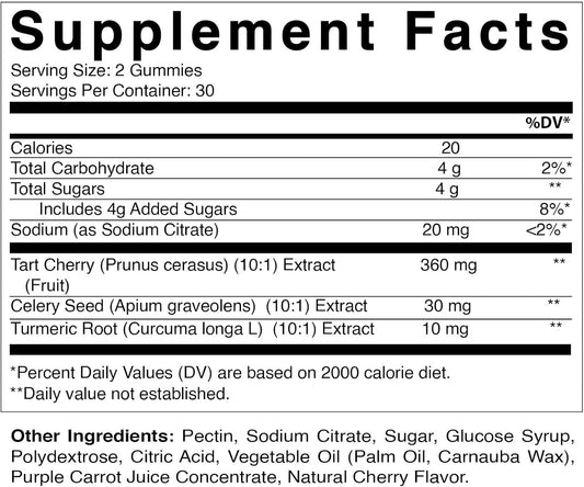 2 Pack Tart Cherry with Celery Seed Gummies - 4000 mg Serving - Uric Acid Cleanse for Joint Comfort, Sleep & Recovery