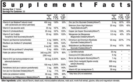 Children's Chewable Multivitamin with Folinic Acid, B12, Riboflavin & Vitamin A - Vegetarian Formula, Methyl-Free - 60 Tablets