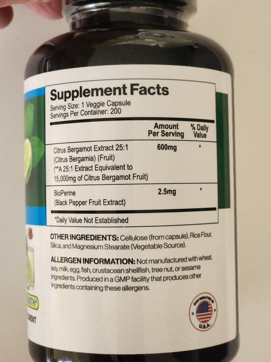 Citrus Bergamot Supplement with BioPerine - 15,000mg, 200 Capsules - Vegetarian Formula for Nutritional Support