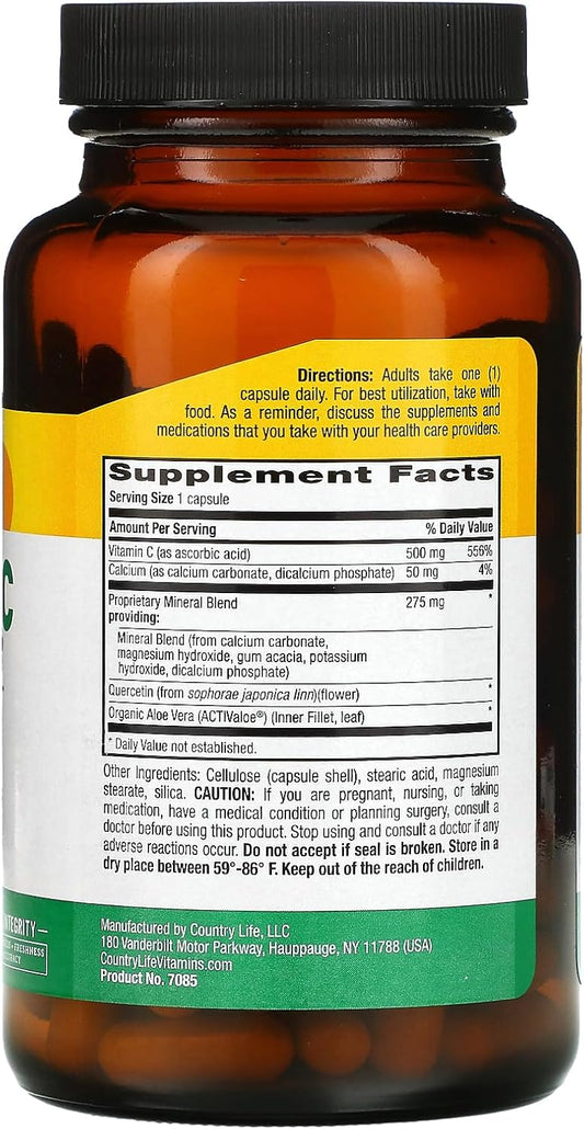 Country Life Vitamin C Supplement 500mg, 120 Vegetarian Capsules