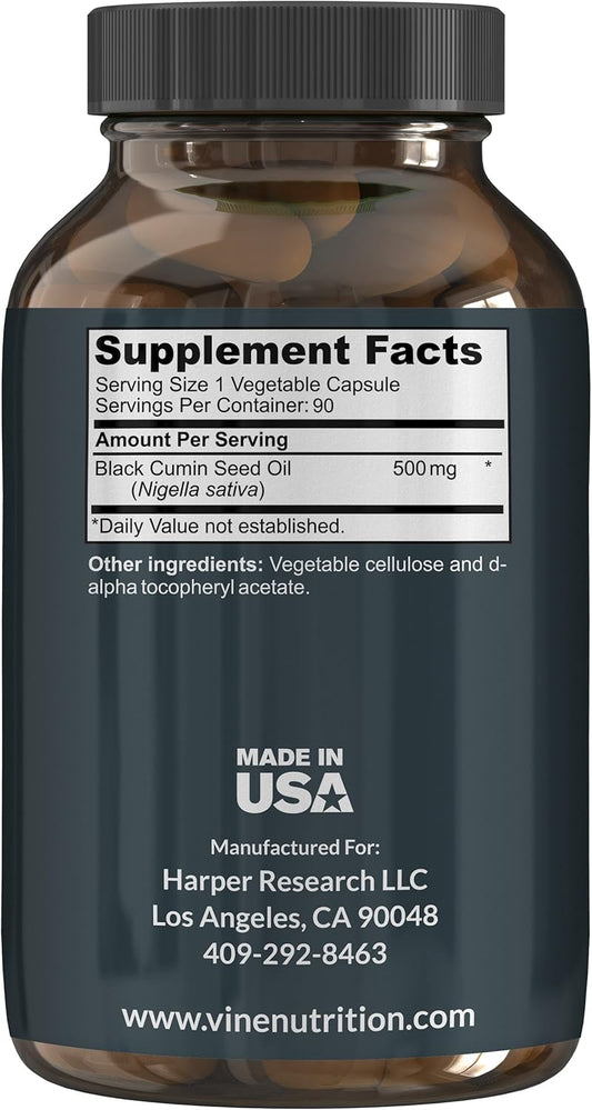 Cold Pressed Black Seed Oil Capsules - 500mg Nigella Sativa Soft Gels for Immune Support - Antioxidant Vegetarian Supplement - Made in USA