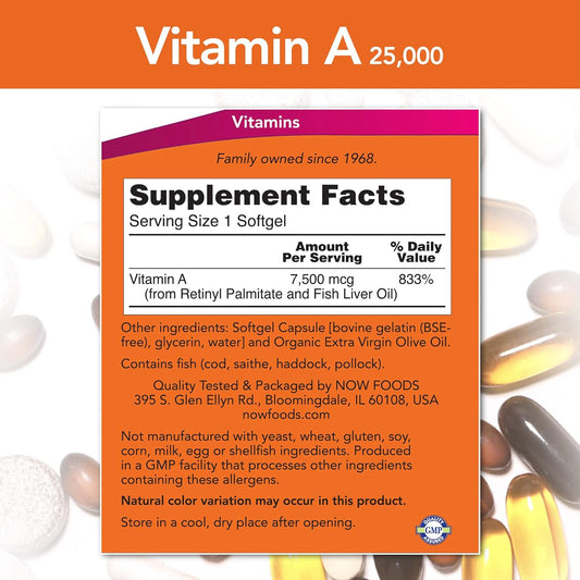 Now Foods Vitamin A 25000 IU Softgels, Fish Liver Oil Source, 250 Count - Multipack