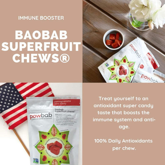 Organic Baobab Superfruit Chews with 750mg Raw Powder - Immune Support Supplement with Antioxidants for Cold Season Vitamin C - Acai Berry & Pomegranate - 30 Chews