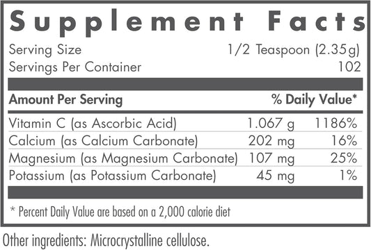High-Purity Buffered Vitamin C Powder with Calcium, Magnesium, and Potassium - 8.5 Oz - Supports Bowel Tolerance and Immune Health
