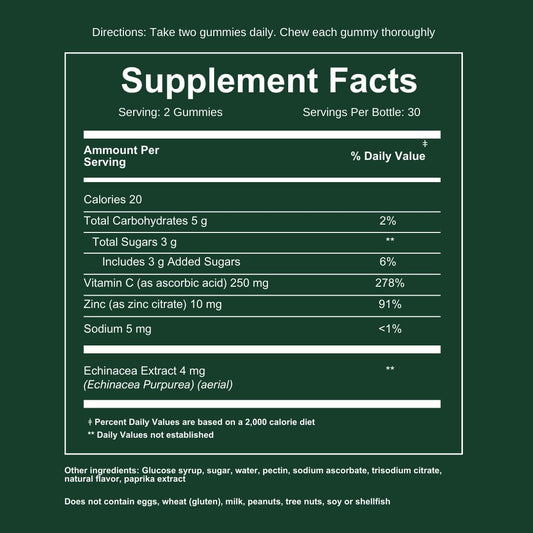 Immune Support Gummies with Vitamin C, Zinc, and Echinacea - Gluten-Free Natural Supplement for Kids and Adults - Health System Boost - 1 Pack