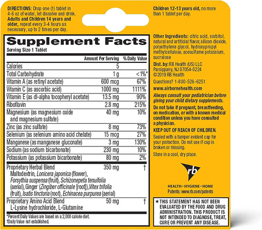 Pack of 30 Airborne 1000mg Vitamin C with Zinc Effervescent Tablets - Immune Support Supplement with Antioxidants - Zesty Orange Flavor