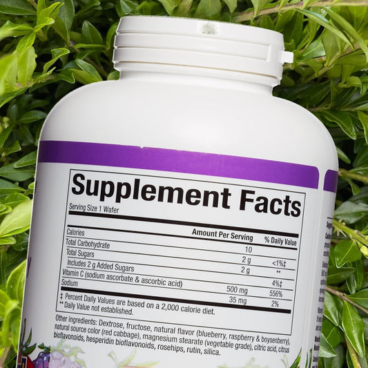 Kids Chewable Vitamin C 500mg Wafers - Immune Health Support with Blueberry, Raspberry, Boysenberry - 180 Count