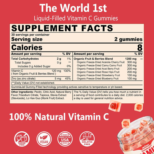 Organic Vegan Whole Food Vitamin C Gummies for Adults & Kids - Natural Antioxidants, Bioflavonoids - Immune & Collagen Support - High Absorption - Zero Sugar - Chewable - 60 Count