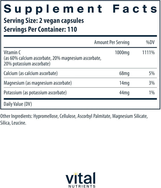 Gentle Buffered Vitamin C 500mg Capsules for Sensitive Individuals | Vegan Immune Support Supplement | Non-GMO, Gluten, Dairy, Soy Free | 220 Count