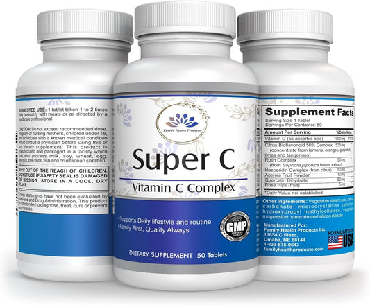 High Potency Vitamin C Complex with Rose HIPS - Antioxidant Protection for Family Health - 1000 mg, 50 Tablets - Vegan Formula, GMO-Free - Immune Support & Wellness