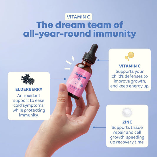 Elderberry Liquid Supplement for Kids, Alcohol-Free Vitamin C & Zinc | 2+ Years | 4 fl oz, 60 Servings