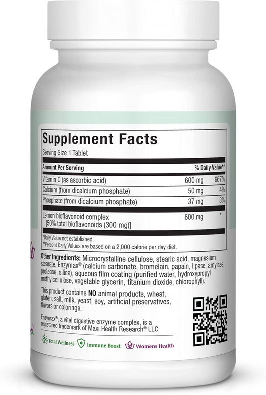 Maxi Health Pure-C-Bio 600 Supplement with Bioflavonoids for Immune & Capillary Support - 90 Tablets - Kosher Certified