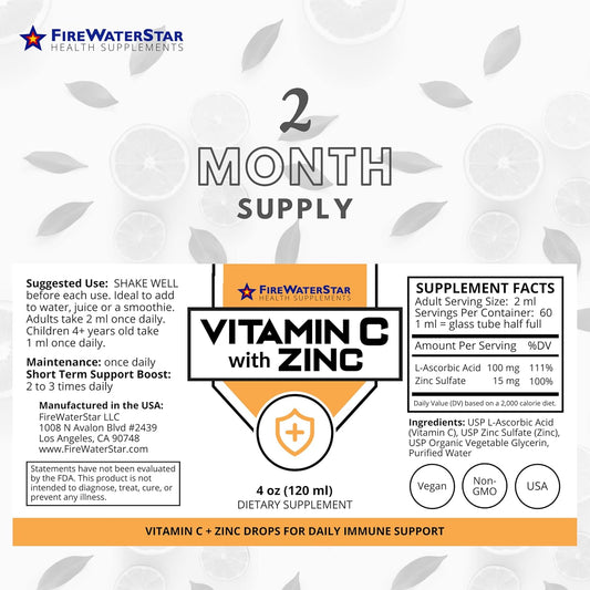 Firewaterstar Liquid Vitamin C with Zinc and Apple Cider Vinegar Supplement Bundle - Immune Support and Antioxidant Boost
