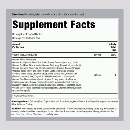 Superfood Blend Vitamin C Caplets - Vegetarian, Non-GMO, Gluten Free Supplement | Piping Rock Whole Foods | 150 Count