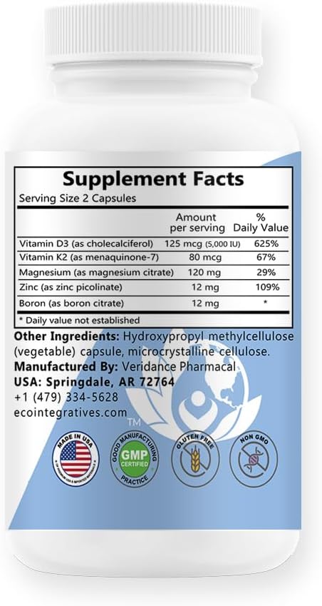 EcoIntegratives D3 Plus Boron Vitamin K2 Magnesium Zinc Vegan Capsules for Overall Health and Wellness