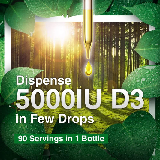 Vegan Lovita Vitamin D3 5000 IU Drops for Immune Support & Strong Bones, 1 Fl Oz - Pack of 2, Adjustable Dosing for All Ages