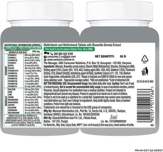 Advanced Multivitamin for Adults 50+: Calcium, Vitamin D3 & 21 Nutrients for Strong Joints & Heart Health (Veg) 50 Tablets