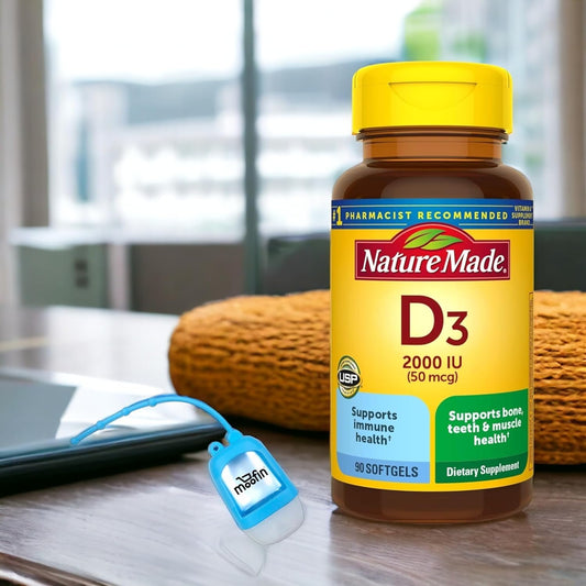 Vitamin D3 Softgels 2000 IU Bundle with Hand Sanitizer Dispenser - 90 Count Pack of 3 - Immune & Bone Health Support - Gluten-Free & No Artificial Colors