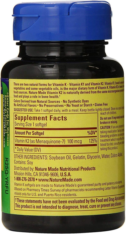 Vitamin K2 100 mcg Softgels - 30 Count (3 Pack) by Nature Made - Packaging May Vary