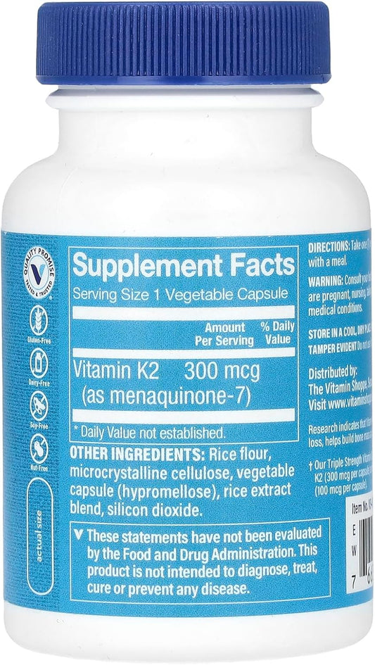 High Potency Vitamin K2 Supplement for Bone Health - 300 MCG Triple Strength Formula (120 Capsules)