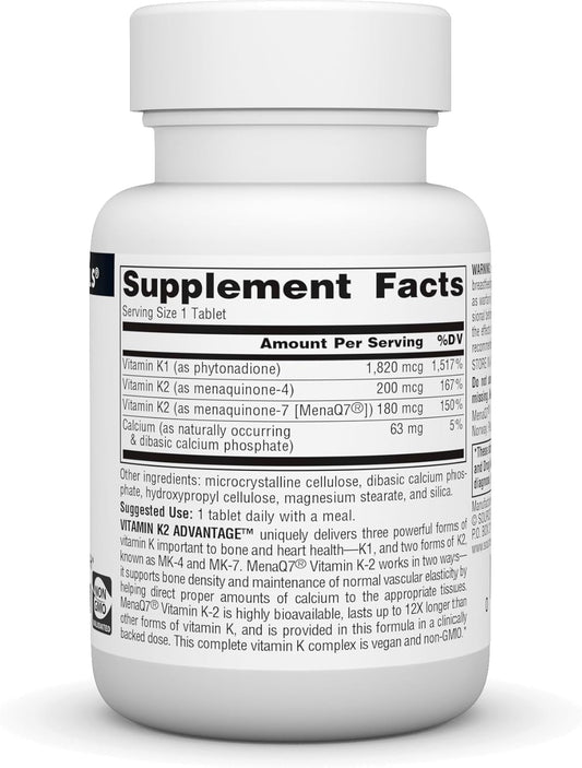 High Strength Source Naturals Vitamin K2 for Bone & Heart Health - 2200 mcg, 60 Tablets