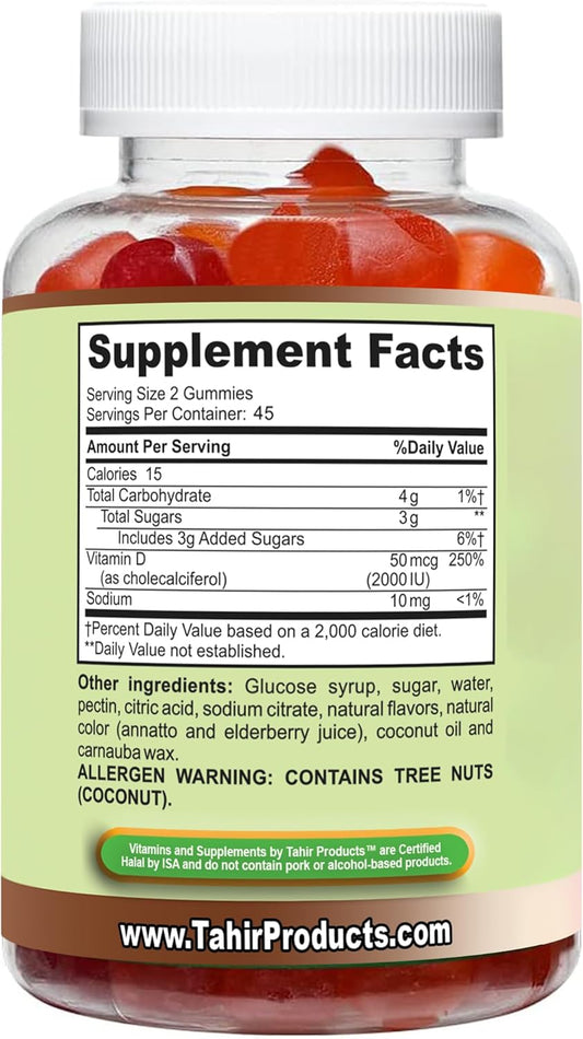Halal Vitamin D3 Gummies 2000 IU - Supports Bone & Immune Health, Promotes Muscle Function - Gluten-Free, Gelatin-Free - 90 Natural Fruit Flavor Gummies - Made in USA - Halal Certified