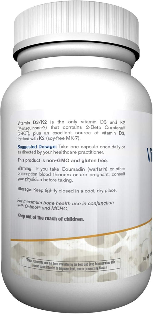 Superior Bone Support Vitamin D3/K2 Supplement (60 Capsules) - Enhance Bone and Joint Health, Boost Immune System - Non-GMO, Gluten-Free