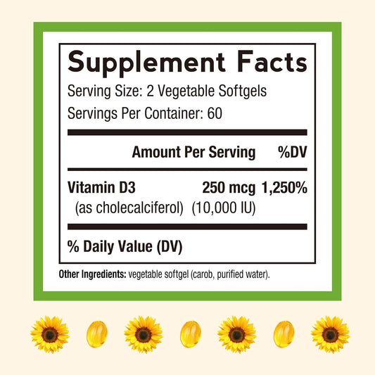 Nature Made Vitamin D3 10000 IU Maximum Strength Softgels, 60-Day Supply (Pack of 2) for Bone, Teeth, Muscle, and Immune Health Support
