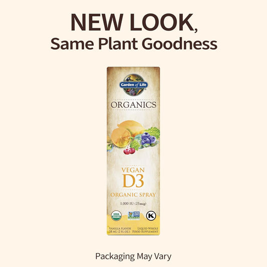 Organic Vegan Vitamin D3 Spray with Omegas - Vanilla Flavor - 1000 IU Per Serving - 2fl oz Liquid Supplement - Garden of Life Organics
