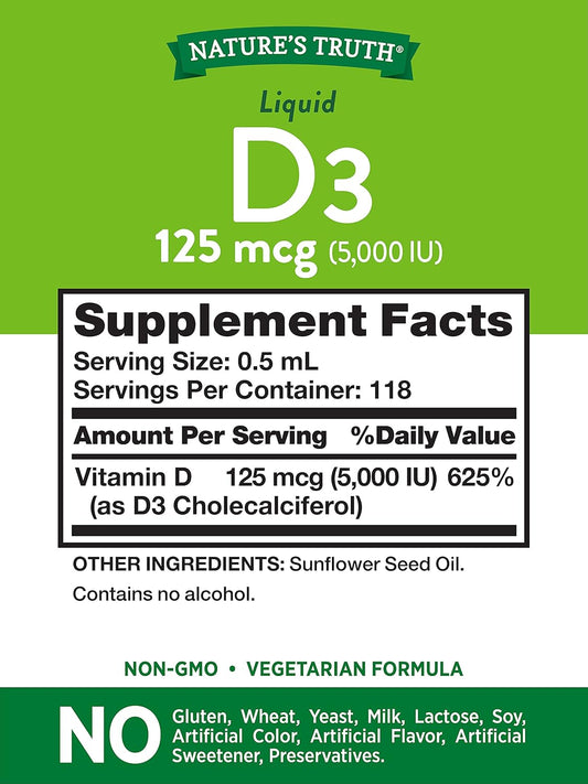 Vitamin D3 Liquid Supplement | 5000 IU | 2 fl oz | Non-GMO & Gluten Free | Nature's Truth