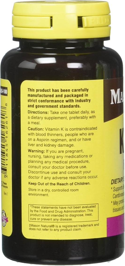 Mason Natural Vitamin K2 100 mcg + D3 1000 IU Tablets - Pack of 3 Bottles, 300 Tablets Total