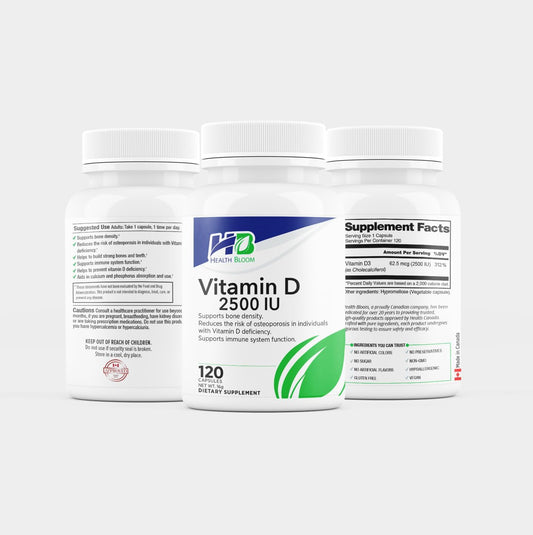 Vitamin D 2500IU Capsules - 120 Count | Health Bloom Inc. | Vitamins and Minerals
