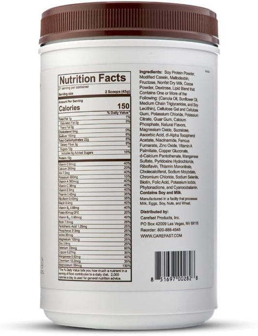 CAREFAST Vintage Plan Chocolate Meal Replacement Mix - 21 Servings, 15g Protein, 3g Fiber, 24 Vitamins & Minerals - 2 lb Protein Shake Smoothie for Weight Loss
