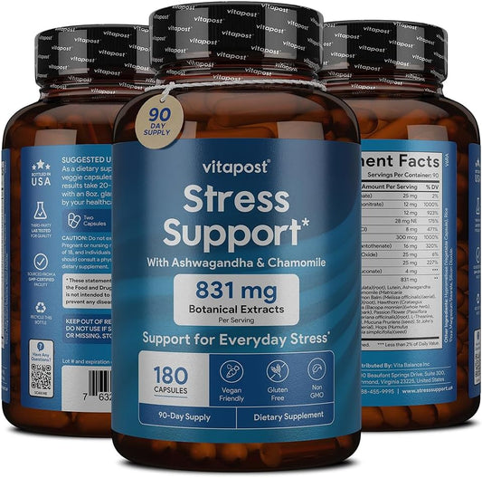 180 Capsules VitaPost Stress Support with Ashwagandha, Chamomile, Valerian, Passionflower and GABA for Natural Healthy Stress Response