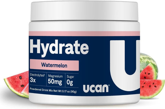 Bundle of UCAN Hydrate Watermelon and Lemon Lime Jars - Ideal for Running, Training, Fitness, Cycling, Crossfit | Sugar-Free, Vegan, & Keto-Friendly Energy Drink Supplement