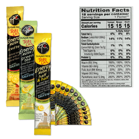 4C Energy Rush Stix Iced Tea Variety Pack - 18 Count Single Serve Water Flavoring Packets - Sugar Free with Taurine - On the Go Bundle