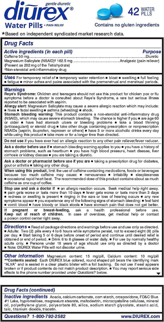 Diurex Water Pills - Box of 42 Tablets for Bloating Relief and Water Weight Loss