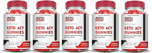 5 Pack of Justified Laboratories Activboost Keto ACV Gummies - Advanced Formula with 1000MG Active Boost, Apple Cider Vinegar, Pomegranate, Beet Juice Powder, B12 - Vegan, Non GMO - 300 GummiesVendor:Justified LaboratoriesRegular price $185.20 AUDRegular priceUnit price per-