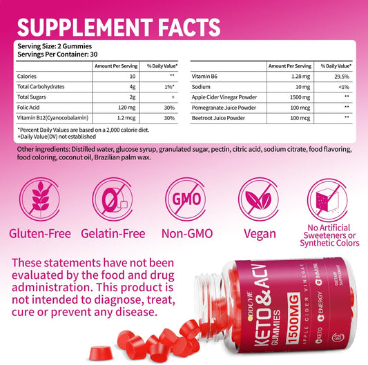 2 Pack Keto ACV Gummies 1500mg with B12 & B6 - Apple Cider Vinegar Supplements for Cravings Support - Non-GMO, Gluten-Free - 120 Count
