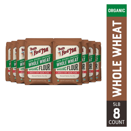 Organic Whole Wheat Flour Bulk Pack - 5 lb x 8 - Non GMO, Vegan, Kosher - Bob's Red Mill