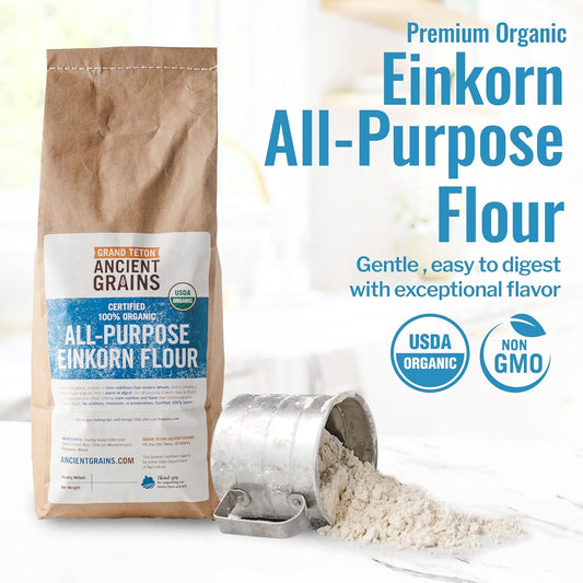 Organic Grand Teton Ancient Grains Einkorn Flour - Non-GMO All-Purpose Flour, Rich in Vitamins & Minerals, Unbleached, 5 lbs