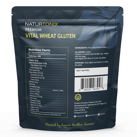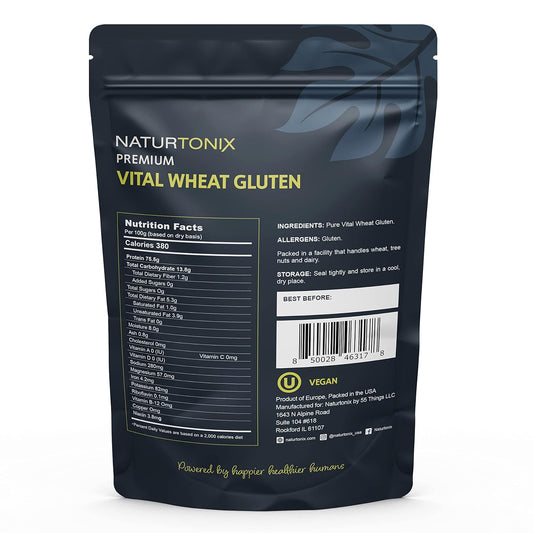 Naturtonix Premium Vital Wheat Gluten - 100% Pure High Protein for Bread, Baking, Seitan - Non-GMO, Vegan, Keto Friendly - Certified Kosher, 12oz
