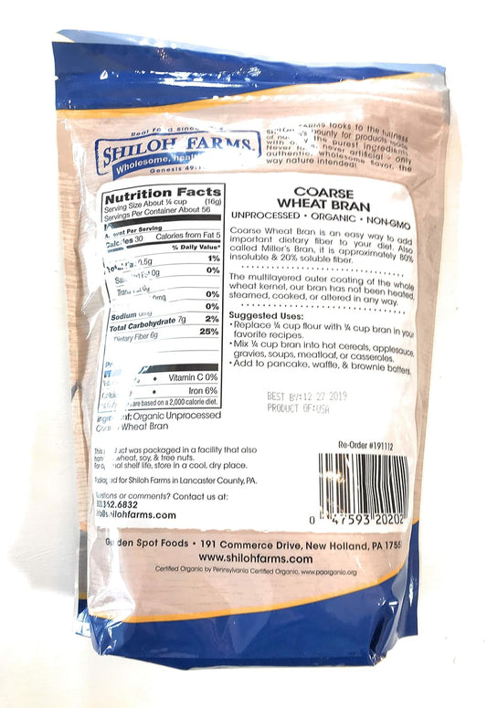 Organic Coarse Wheat Bran by Shiloh Farms - 32 oz - Unprocessed and Nutrient-Rich